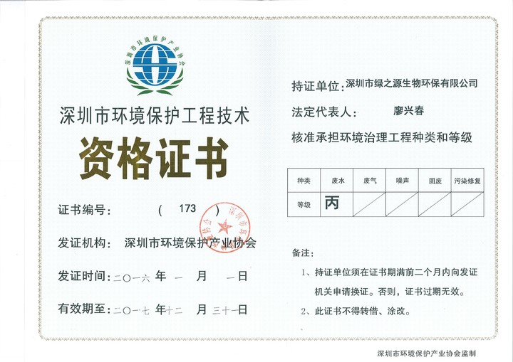 深圳市綠之源生物環(huán)保有限公司成立十余年,是經深圳市環(huán)保局批準的具有專項環(huán)保工程設計資質的企業(yè),深圳市高新技術企業(yè)。公司從創(chuàng)立初期的水處理藥劑、水處理設備的研發(fā),逐步成長為環(huán)保類綜合性服務的企業(yè),目前年營業(yè)額約三千萬,集水處理藥劑研發(fā),工業(yè)廢水、廢氣及農村生活污水處理等環(huán)保工程的設計、安裝、調試、運營、技術咨詢一條龍服務,為珠三角眾多企業(yè)服務,解決相關環(huán)保難題,并取得了良好的社會效益和環(huán)境效益。